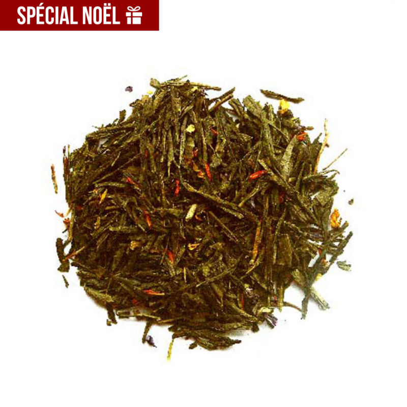 Thé noir parsemé d'écorces d'oranges, carthame, mauve e pétales de tournesol. Aux arômes de cannelle, orange et girofle: un savoureux mélange de fêtes !