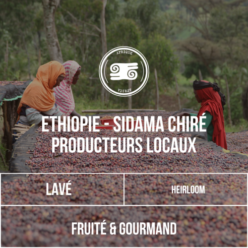 Originaire de Chiré Woreda, dans la région de Sidama en Éthiopie, ce café incarne l’excellence d’un terroir mondialement reconnu pour ses Arabicas d’exception. Cultivé entre 1 900 et 2 100 m d’altitude, il profite d’un climat frais qui favorise une maturation lente des cerises et intensifie la richesse aromatique des grains.